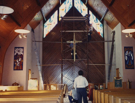 Airplane nosecone newel and propellor ballister design and execution at airport hangar
